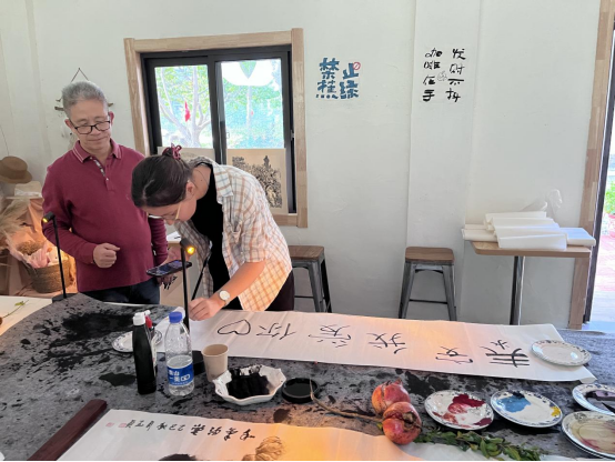 艺术体验环节,留学生们在书画老师的指导下,提笔挥毫,以书画寄情,感受笔墨丹青间的雅韵与意蕴,还通过点染勾勒,将中秋意象定格于扇面之上,创作出独具韵味的艺术作品。