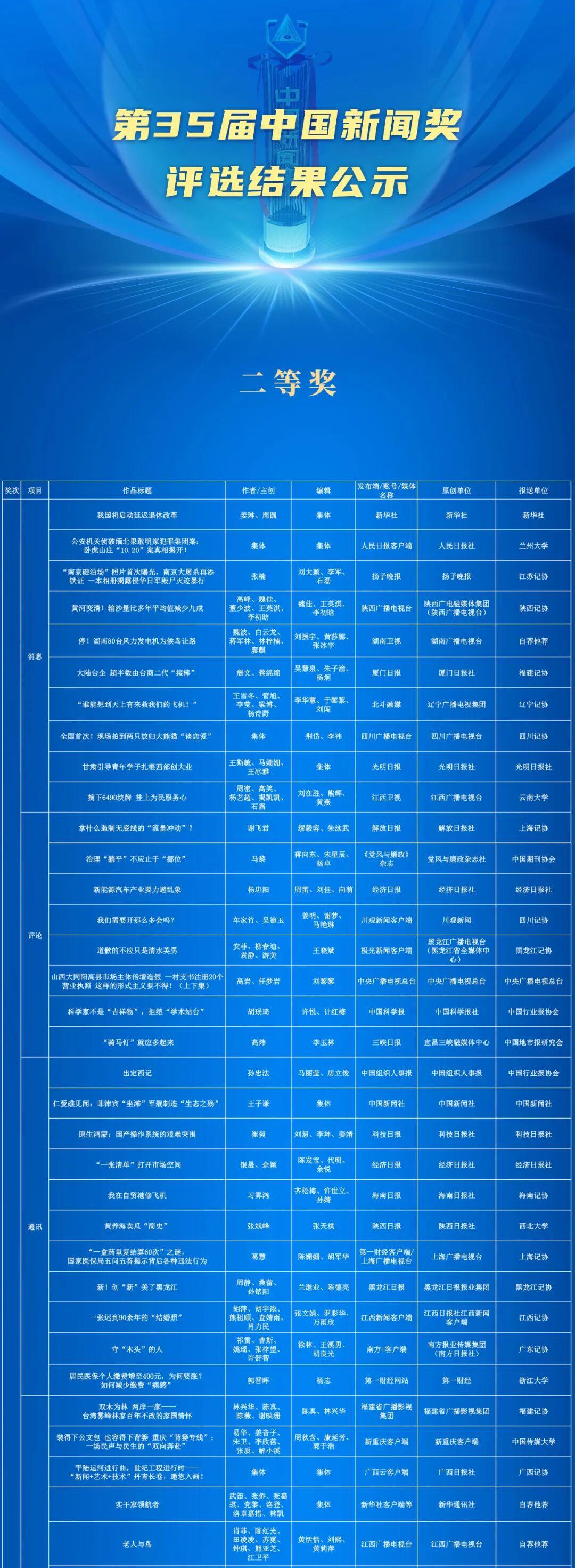 关于公示第35届中国新闻奖评选结果的公告