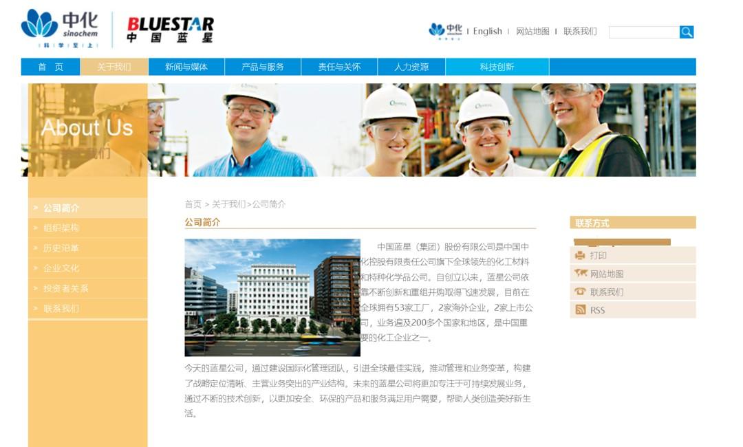 中国蓝星(集团)股份有限公司是中国中化控股有限责任公司旗下全球领先的化工材料和特种化学品公司。目前在全球拥有53家工厂,2家海外企业,2家上市公司,业务遍及200多个国家和地区,是中国重要的化工企业之一。