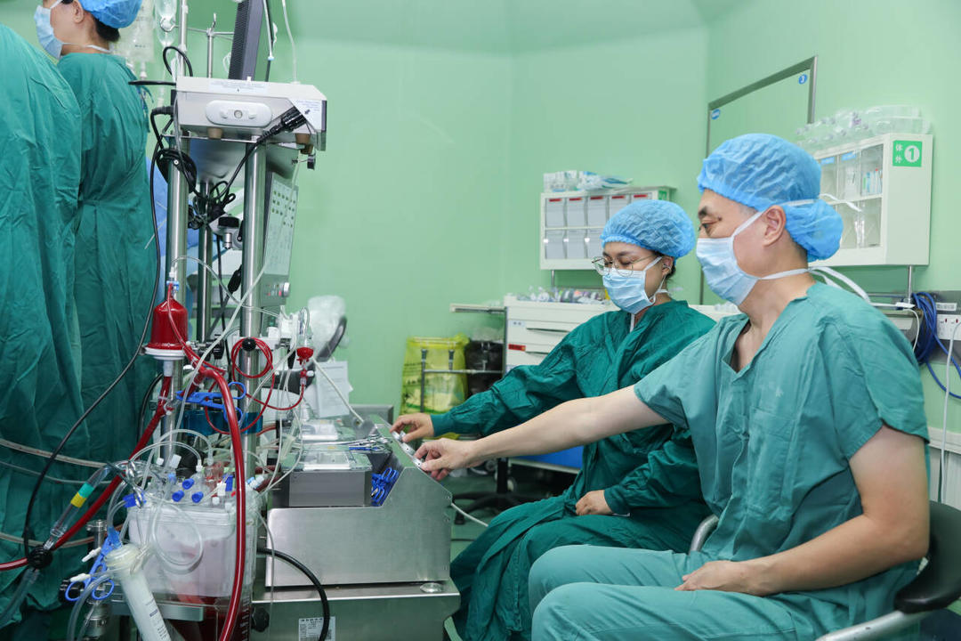 王丽红(左2)、马加海(左3)术中查看患者身体指标