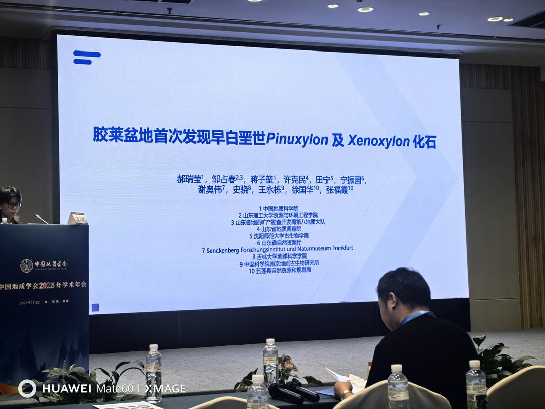 在“地层古生物研究新技术、新方法和新进展”分会场,中国地质科学院郝瑞莹以《胶莱盆地首次发现早白垩世Pinuxylon和Xenxylon化石》为题,展示了八队参与完成的胶莱盆地早白垩世硅化木研究成果。该研究首次在该区域发现Pinuxylon和Xenxylon两类重要硅化木化石,不仅丰富了我国白垩纪古植物群记录,也为恢复古环境、研究古气候演变提供了关键实物证据。