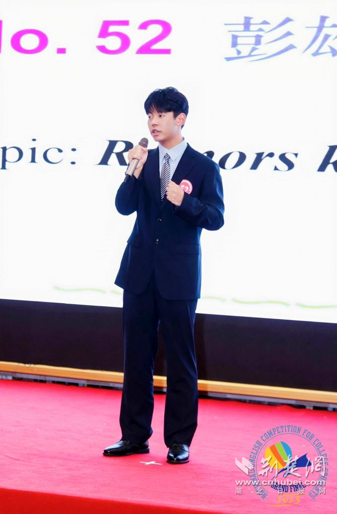 荆楚网(湖北日报网)讯(记者唐天琪 通讯员施慧丽)站在全国大学生英语竞赛演讲台上,聚光灯刺眼,台下是来自全国的优秀选手、资深评委与指导老师。抽到题目时,彭雄柏虽紧张,但他深吸一口气后,迅速组织语言完成演讲。当演讲结束掌声响起那一刻,他觉得所有坚持与努力都值了。这只是他大学生活众多高光时刻之一。