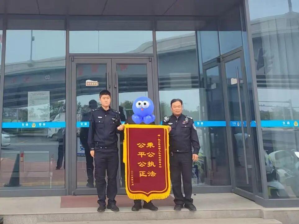近日,贾先生将一面带有“秉公执法 公平公正”的锦旗送到了南城中队办案民辅警手中,感谢他们对事故的快速处理与结果。