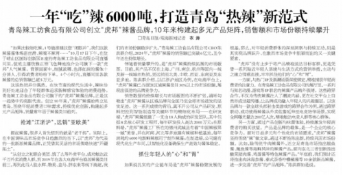 在记者提问环节,青岛日报记者向虎邦CEO陈洪群提问:“当初为何选择进军辣酱领域?未来是否会持续深耕这一赛道?”陈洪群回应称:“到2025年,虎邦涉足辣酱行业将满十年,当初正是看中了该行业‘一超多寡’的市场格局。未来,虎邦将继续深耕调味品领域,坚定战略方向,专注主业发展。”