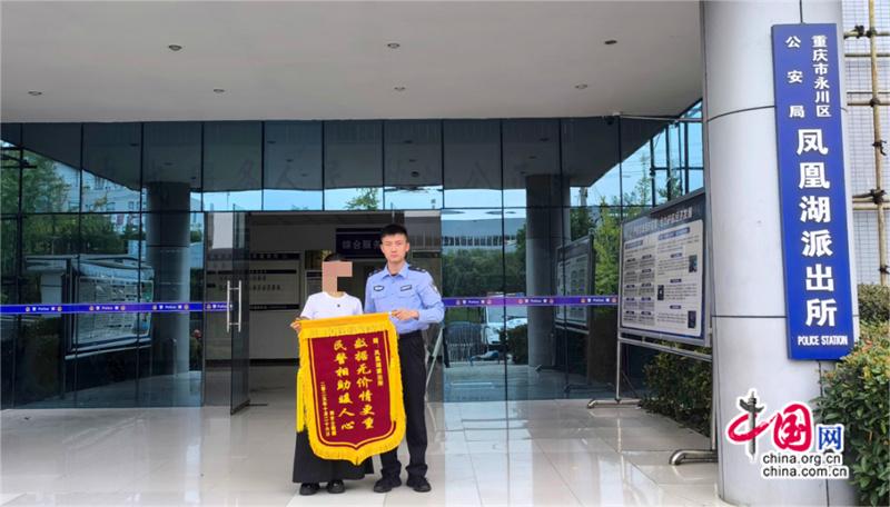 10月16日,市民刘女士来到永川区公安局凤凰湖派出所,将一面印有“数据无价情更重,民警相助暖人心”的锦旗送到新警钟传为的手中,感谢其帮忙找回遗失的手机。