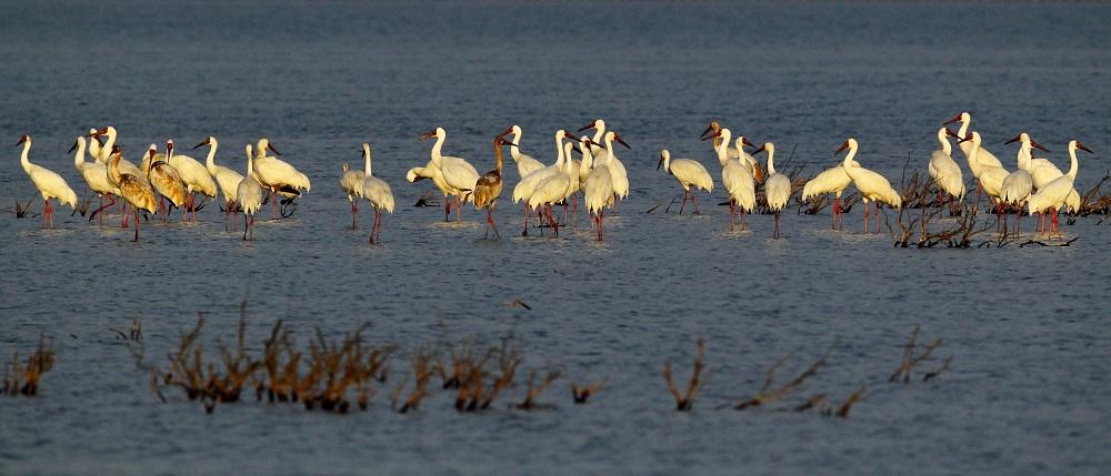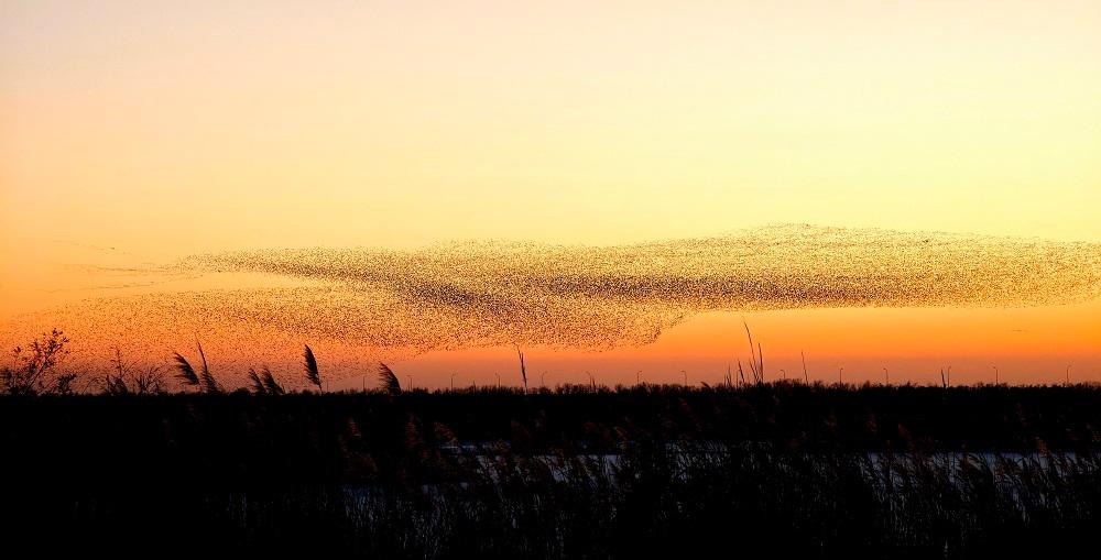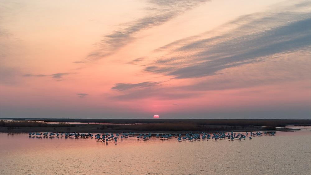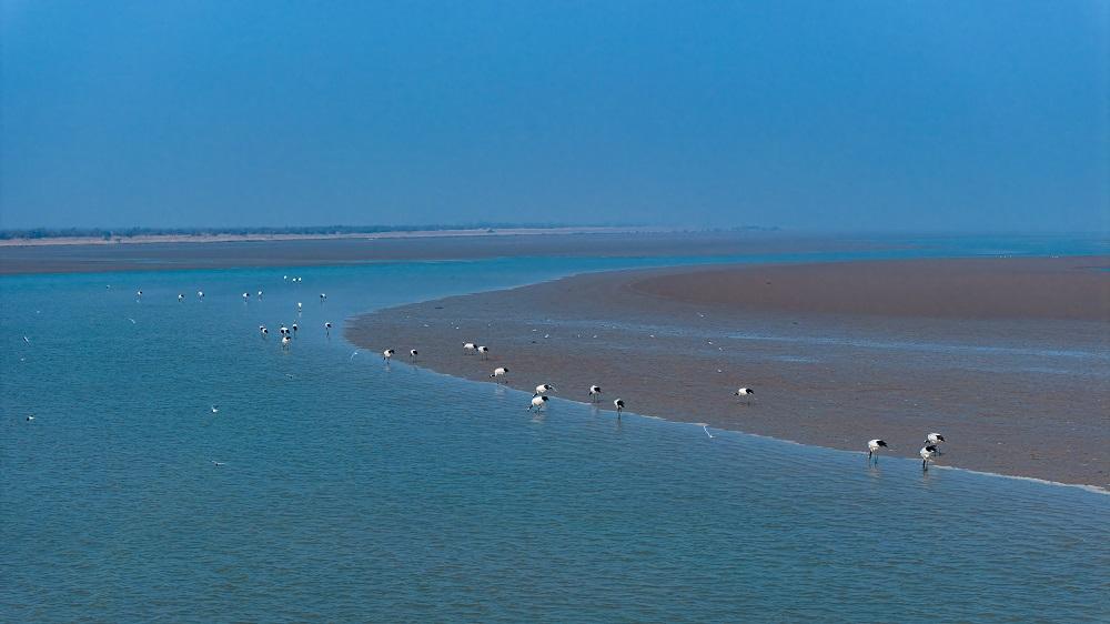 图为在山东黄河三角洲国家级自然保护区拍摄的鸟景