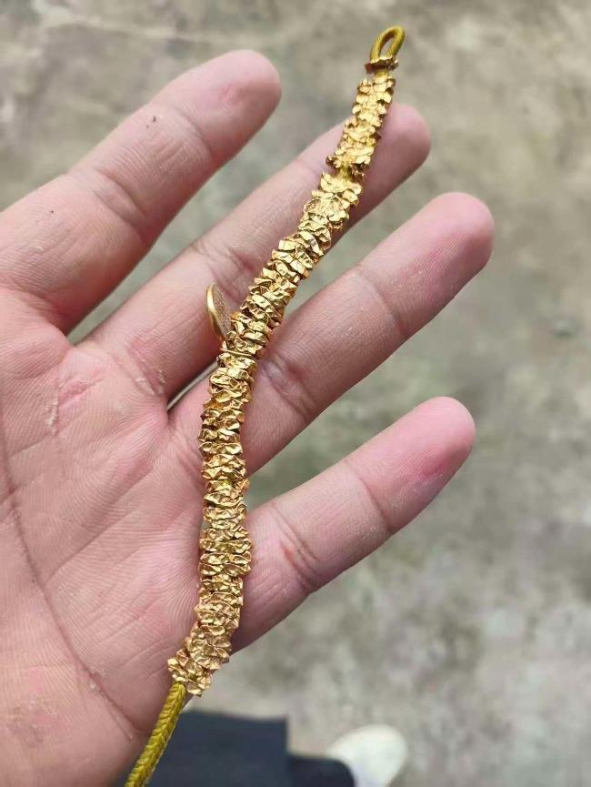 当李先生的弟弟将手链从泥土中拾起时,发现它已被过往的车辆压扁,嵌进了泥土里。虽然手链的形状有了些许改变,但喜悦瞬间冲淡了所有遗憾。“压扁了也不要紧,能找到就很幸运了。”李先生说。