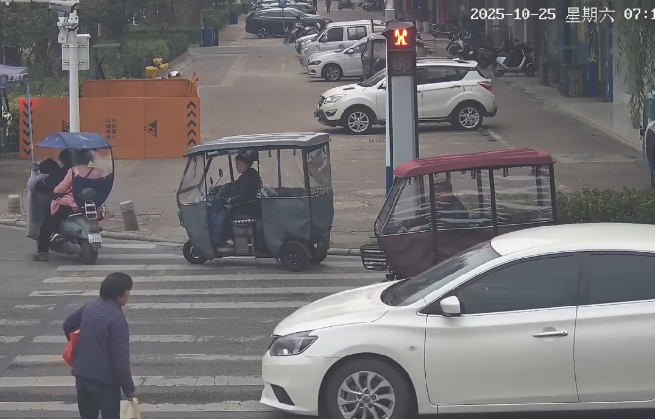 当天7时10分左右,阜阳市公安局交管支队颍东大队交警,在当地济河路与北京路交口执勤,正值早高峰时段,执勤交警发现在南侧路口,一步行老人闯红灯快步横穿马路,而一白色轿车正由南向北加速行驶,准备抢在绿灯的最后几秒通过路口。
