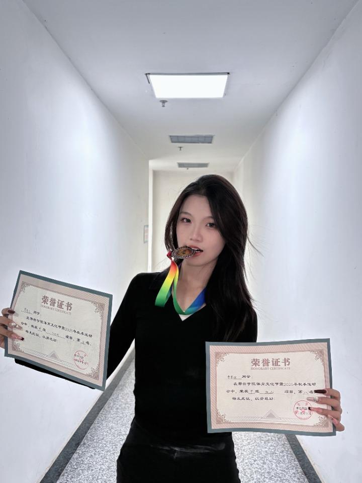 罗若云告诉记者,她来自四川,现在是邢台学院戏剧影视艺术系的大一新生。10月26日,她报名参加了校运会的4×400米田径比赛,她是团队的第三棒,当时7个学院的队伍在比赛,前五名有奖状,前三名额外还有奖牌,“接力棒给到我的时候,我们是倒数第二,第六名,我觉得第六名太可惜了,就还是想拿个奖,就往前冲了,超过了一个人之后,又想拿个高一点的名次,然后就一路超,最后超过了4个人,跑到了第二名,最后一棒也成功保住了这个名次。”