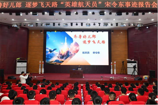 报告会以“齐鲁好儿郎,筑梦飞天路”为主题,宋令东深情讲述了自己如何从菏泽田间走向浩瀚星空。报告厅内,学生们凝神聆听,眼中闪烁着梦想的光芒。
