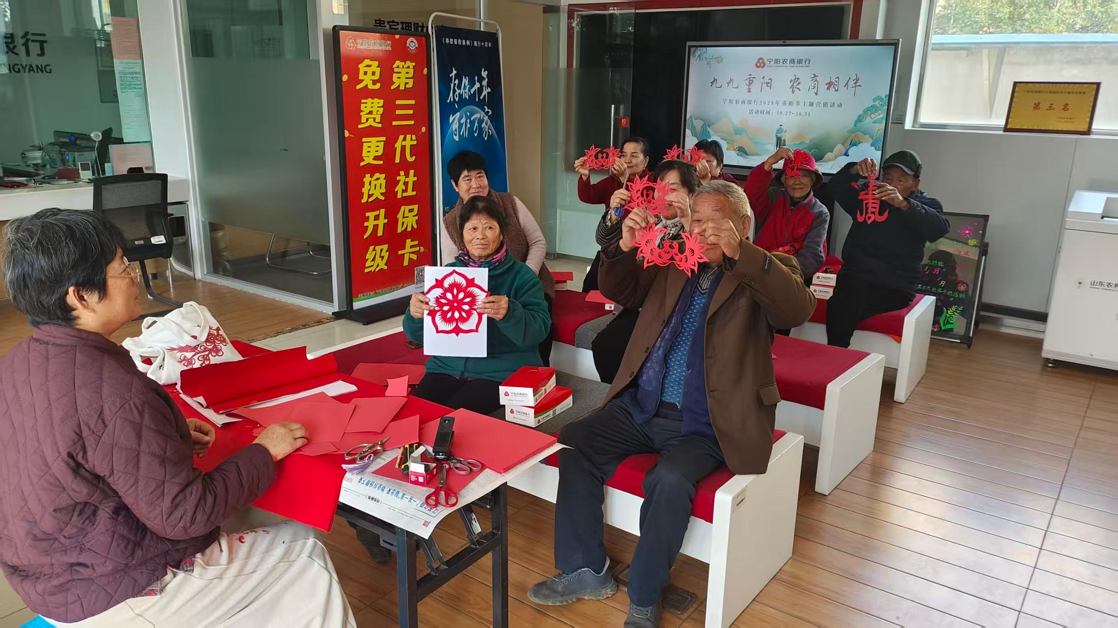鲁网10月29日讯“大爷,您拿好这袋鸡蛋,一元钱就够啦!”“阿姨,剪纸图案您选这个福字,我教您怎么剪更顺手!”10月29日,农历九月初九,宁阳农商银行华丰支行营业厅内热闹非凡,处处洋溢着欢声笑语,一场以“久久重阳 农商相伴”为主题的重阳节暖心活动正在这里温情上演,用实在福利与传统文化陪伴周边老年客户度过一个温馨的节日。
