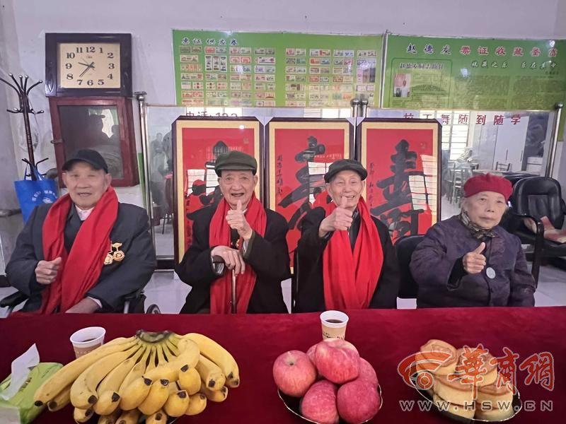 半坡社区属于老年人较多的社区,在每年重阳节来临之际,都会举办形式多样的庆祝活动。今年重阳节,社区除了开展为老年人义诊、免费理发等活动外,还有一个“重头戏”,为社区三位抗美援朝老兵送上大大的“寿”字,以及温暖的羊绒围巾,并陪着他们忆往昔,听老英雄们讲述战争年代的故事。