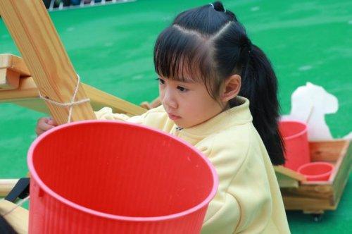 灵感并未止步,王子衿分享:“我玩过转转杯,能一边转一边接球!”“我们的旋转木马也能加接球游戏!” 陈子卿兴奋地说。针对 “没有发射器” 的问题,周慕臻提议:“往中间投球,像玩投掷墙一样!” 孩子们再次分工,找水桶当 “接球筐”、去玩具区装海洋球、固定水桶到支架上。