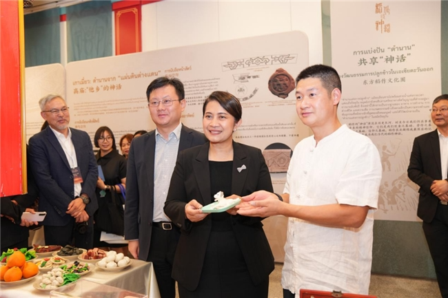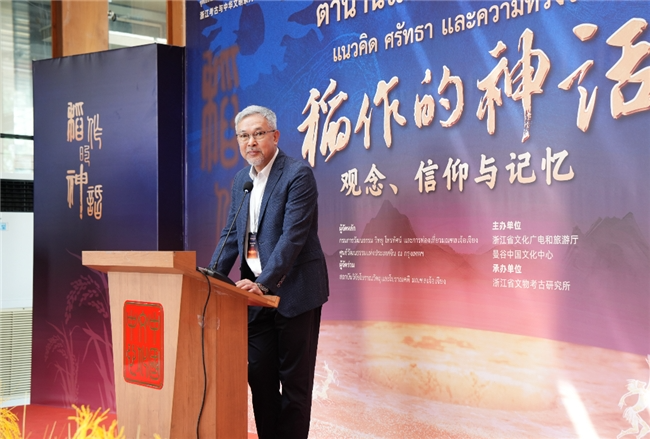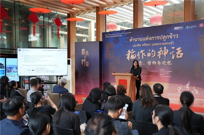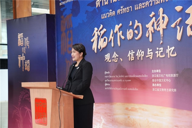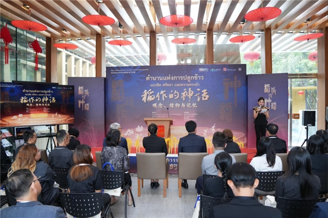 2025年10月30日下午,由浙江省文化广电和旅游厅、曼谷中国文化中心联合主办,浙江省文物考古研究所承办的浙江考古与中华文明系列对外交流展——“稻作的神话:观念、信仰与记忆”线下特展在曼谷中国文化中心开幕。