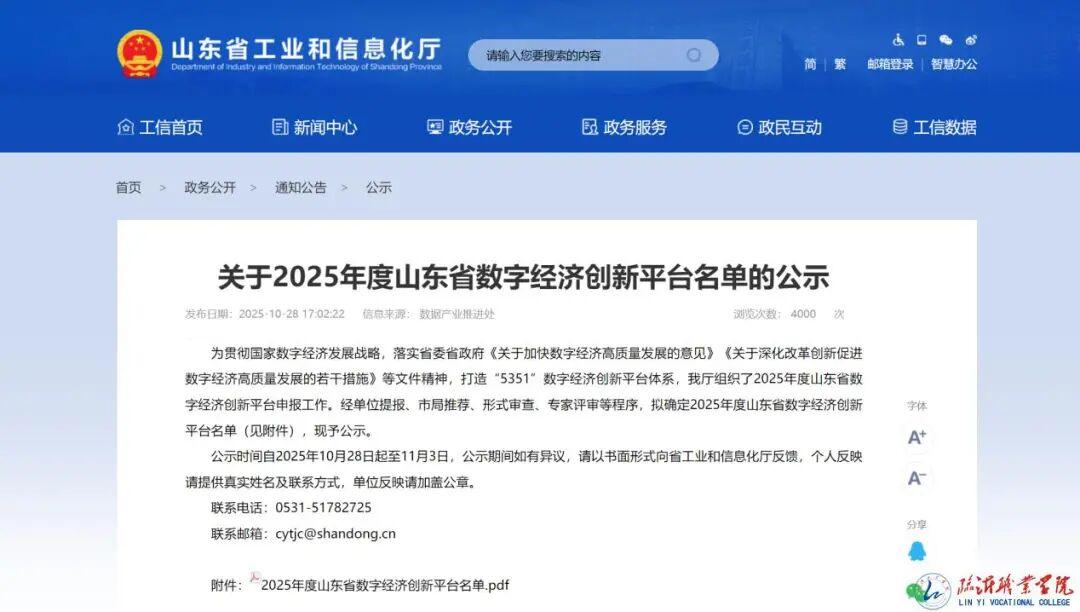 鲁网11月10日讯近日,山东省工业和信息化厅公示了2025年度山东省数字经济创新平台名单,临沂职业学院信息工程学院申报的“数字经济人才实训基地”成功获批,标志着临沂职业学院在数字经济人才培养领域的校企协同育人模式获得省级权威认可。