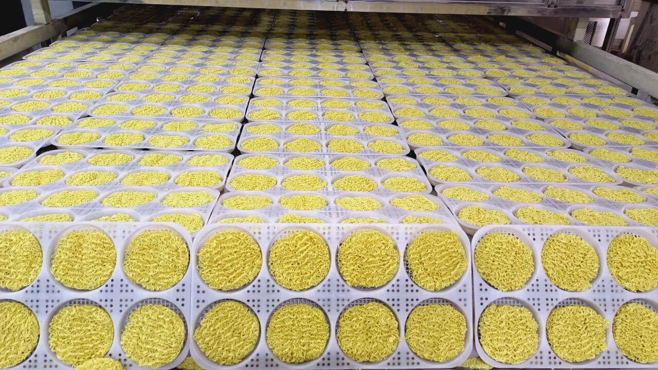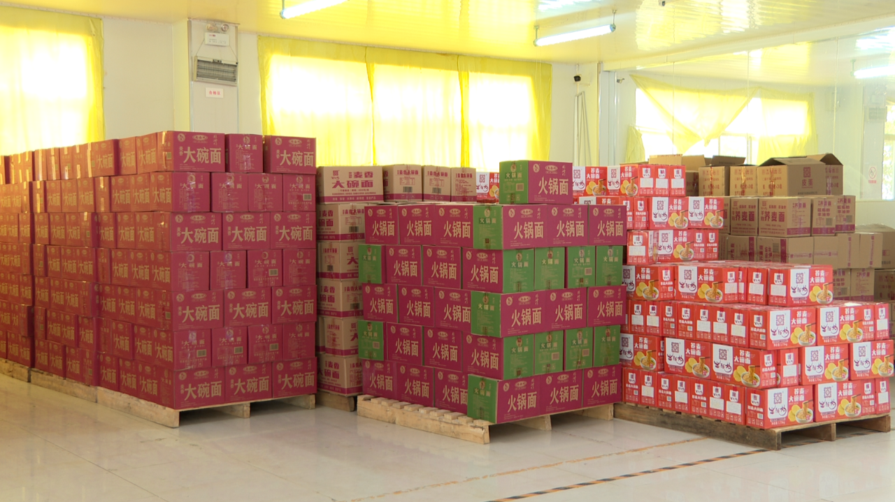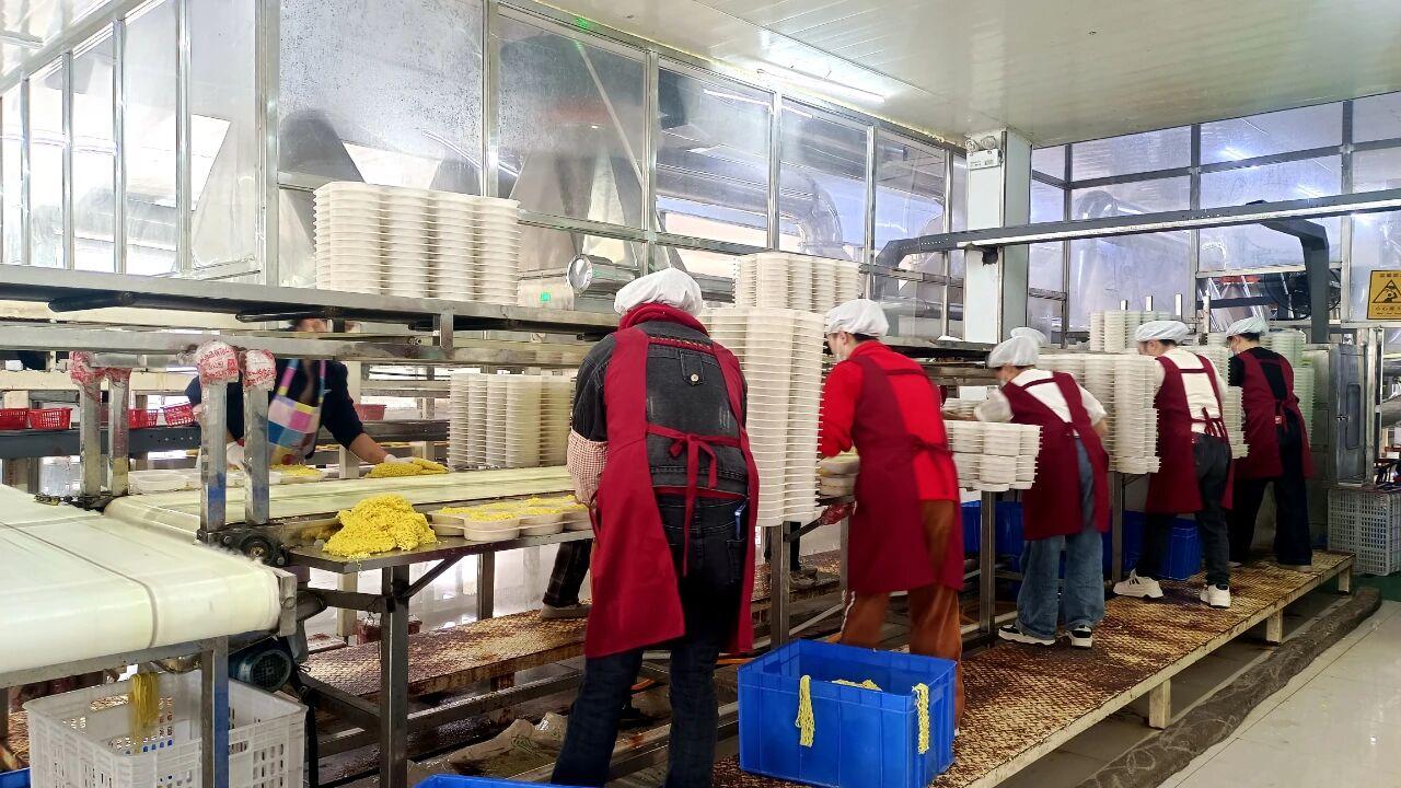 贵州苗干妈食品有限公司生产厂长彭字修介绍,工厂现阶段处于生产和销售旺季,常规品类每天产量是5000到8000件,一个月产量在1000吨左右,现在主要生产品种是非油炸大碗面、火锅面、荞麦面等蔬菜面,常规品类有十几个。