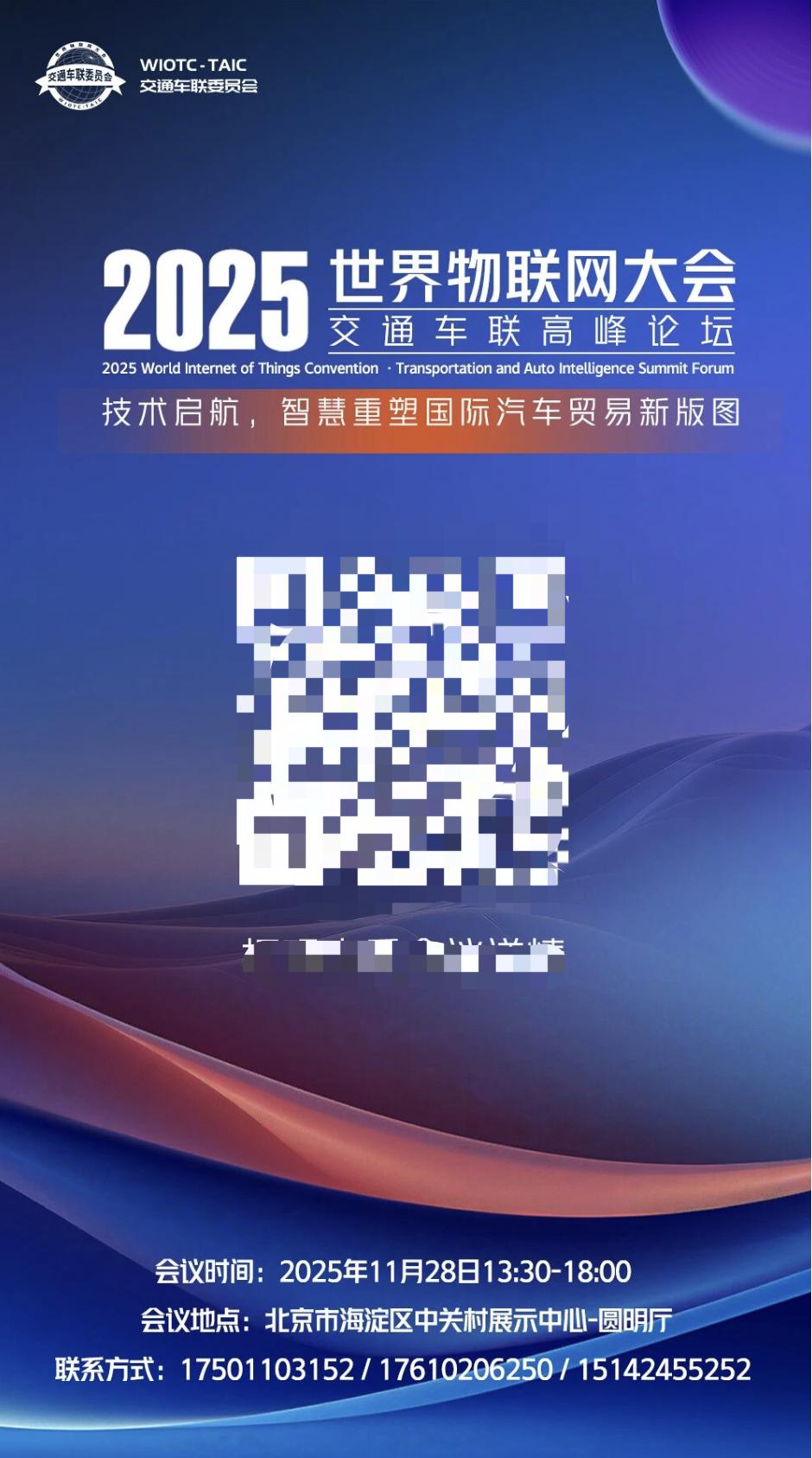 2025年11月28日,2025世界物联网大会・交通车联高峰论坛将在北京举办。