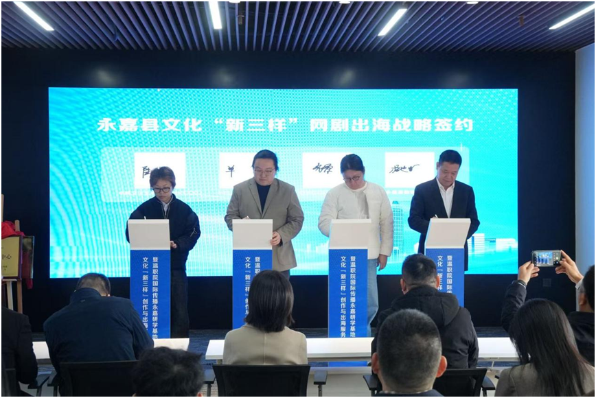 11月19日,文化“新三样”创作与出海服务中心成立暨温职院国际传播永嘉研学基地授牌仪式在温州永嘉举行。来自国内外文化“新三样”企业代表、行业作家、国际友人等嘉宾齐聚一堂,共同开启永嘉文化出海的新篇章。