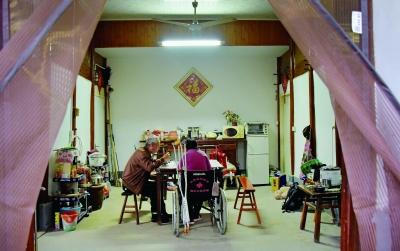 一天下来,李晓金要帮助妻子上下床多次,毫无怨言。