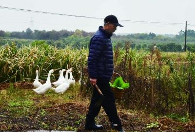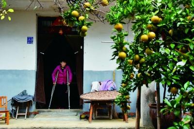 秋天果树成熟了,沈菊青常常拄着双拐站在门口望向院落。