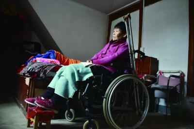 沈菊青每天大部分时间都是一个人坐在轮椅上看着窗外。