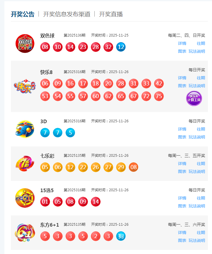11月26日福彩中奖号码