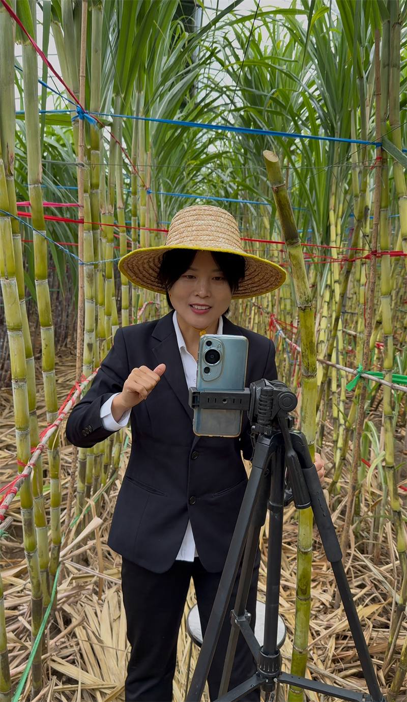 今年9月,梁伟丽在田间进行助农直播。 受访者供图