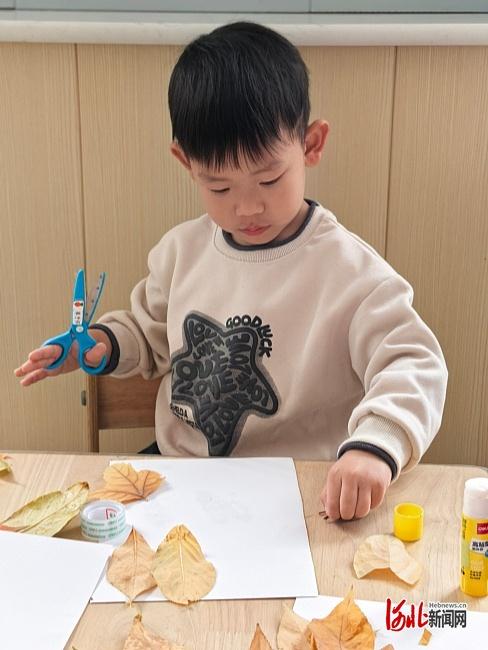 在活动中,幼儿们在老师的带领下走出教室,亲近户外环境,用眼睛寻找喜欢的色彩,用双手捡拾落叶、果实等自然材料。回到活动室后,幼儿们发挥想象力和创造力,专注于裁剪、拼贴、描绘,将自然的馈赠转化为灵动的艺术作品。有些幼儿用树叶拼贴出可爱的小动物,有些则利用果实和树枝制作出立体的“秋天的树”。