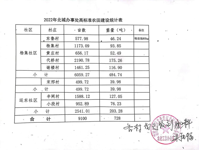 项目其中一标段,当地街道办农村工作办公室向中标企业出具的验收统计表。爆料人供图。