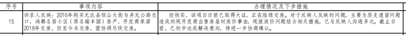 3、诉求人反映:2016年购买元氏县恒山大街与井元公路交口,鸿都名居小区(原名瑞丰园)房产,开发商承诺2018年交房,但至今未交房,望协调尽快交房。