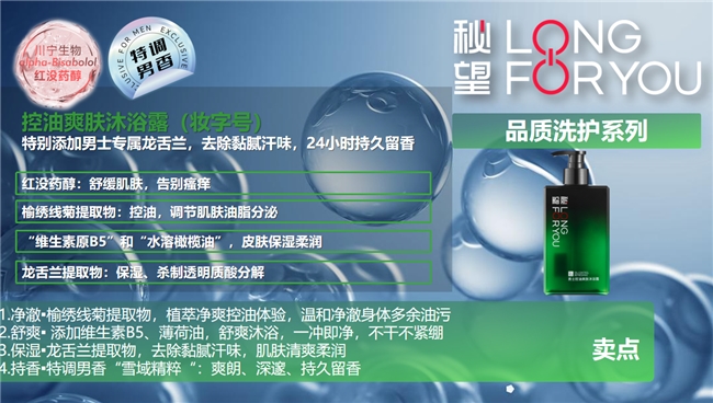 再看成分搭配。黄芩根提取物作为控油成分,其淡黄色外观正是自身成分的呈现。其中的黄芩苷成分,通过调节皮脂腺细胞的油脂合成通路,从根源上减少油脂分泌,打破油脂分泌过多的恶性循环。与啤酒花提取物搭配后,形成双重控油体系,让头皮更清爽。沐浴露的成分设计同样兼顾清洁与调理,龙舌兰叶提取物起到保湿收敛作用,缓解清洁后肌肤干燥紧绷;榆绣线菊提取物则针对性调节身体肌肤的油脂分泌,让清爽感更均衡。