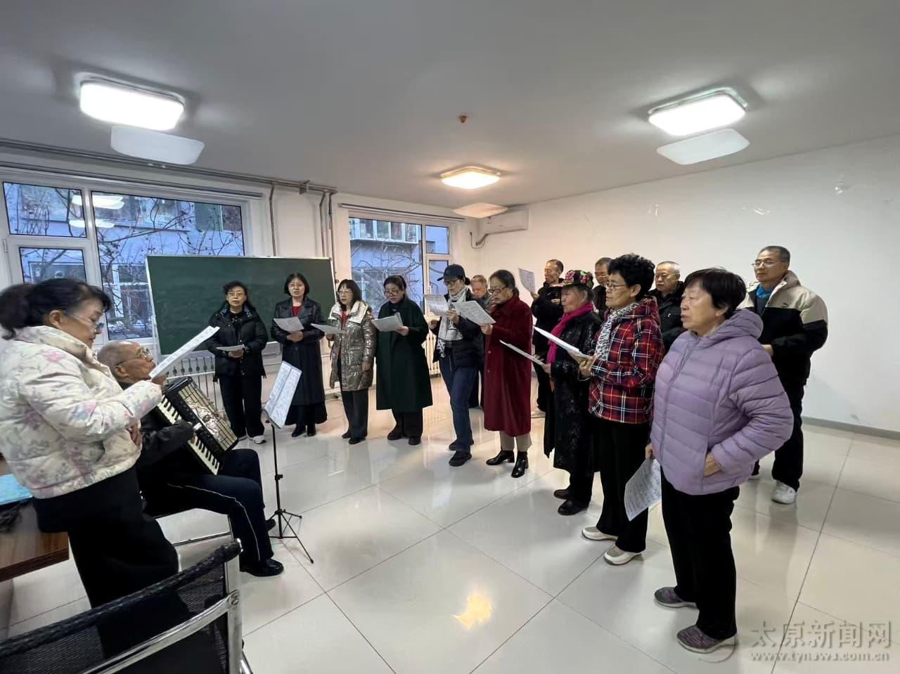 “夕阳是晚开的花,夕阳是陈年的酒。”——合唱社团不分年龄、不设门槛,60岁至80岁的成员们以歌为媒,抄歌词、练和声、悟节奏,在反复打磨中成就整齐嘹亮的合唱效果。他们不仅在社区排练中收获快乐,更走进广场、养老院开展公益展演,用《我和我的祖国》《歌唱祖国》等经典红歌传递温暖、凝聚邻里深情。