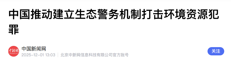 中新社北京12月1日电(记者郭超凯)记者12月1日从中国公安部获悉,近日,公安部等十部门联合印发《关于加强生态警务机制建设的意见》(以下简称《意见》),推动建立公安机关牵头、相关部门联动的生态警务机制,依法严厉打击环境资源犯罪。