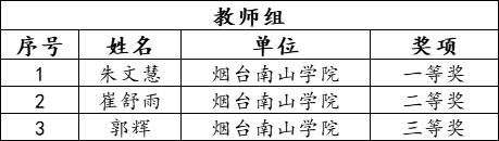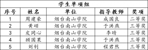 近日,由山东省教育厅主办的山东省第七届高校美术与设计专业师生基本功展示活动公布获奖名单,烟台南山学院艺术与设计学院斩获8项大奖,其中教师组获一、二、三等奖各1项,学生组获二等奖1项、三等奖4项。