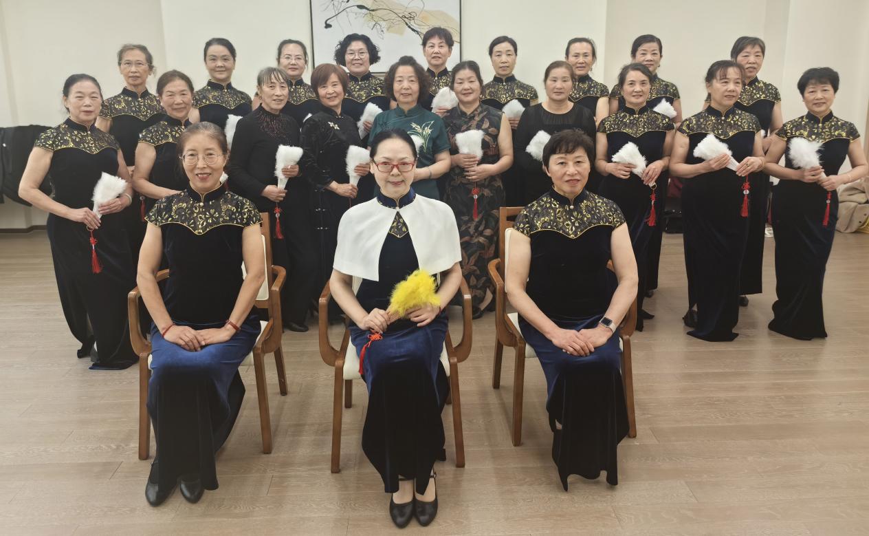 十五周时间里,课程从基础体态矫正起步,中后期融入扇子、丝巾等道具;从“纠正含胸驼背”延伸到“气质仪态塑造”;从坐姿的“腰背贴椅不塌肩”,到抬手的“手肘自然成弧度”……居民从最初站几分钟就腰酸,到后来能自然保持挺拔站姿,变化藏在每个人的日常里。收官展示上,大家手持羽毛扇走成一排,既有形体课练出的规整,又带着舒展的松弛感,惹得旁观的居民笑着鼓掌。