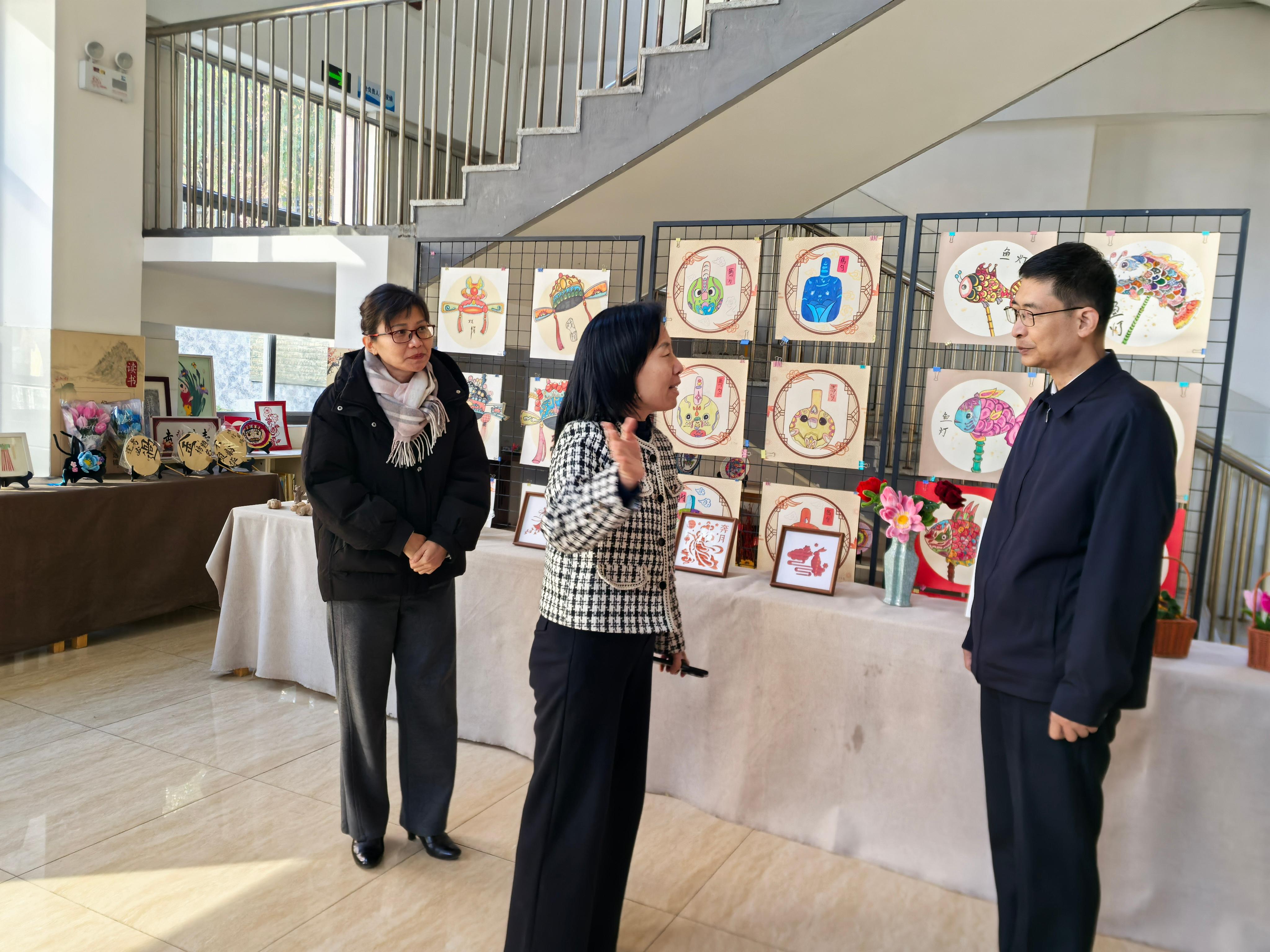 活动伊始,与会领导、嘉宾共同漫步校园,沉浸式感受景山小学 “以美育人、向美而生”的浓厚文化育人氛围。教学楼内诗书画印、笔墨纸砚主题展区与京剧脸谱、扎染作品相映成趣,“景小美学非遗”校本课程成果展上,兔子王、剪纸、拓印等学生作品琳琅满目,书香墨韵与艺术气息交融,为此次讲座奠定了深厚的文化基调。