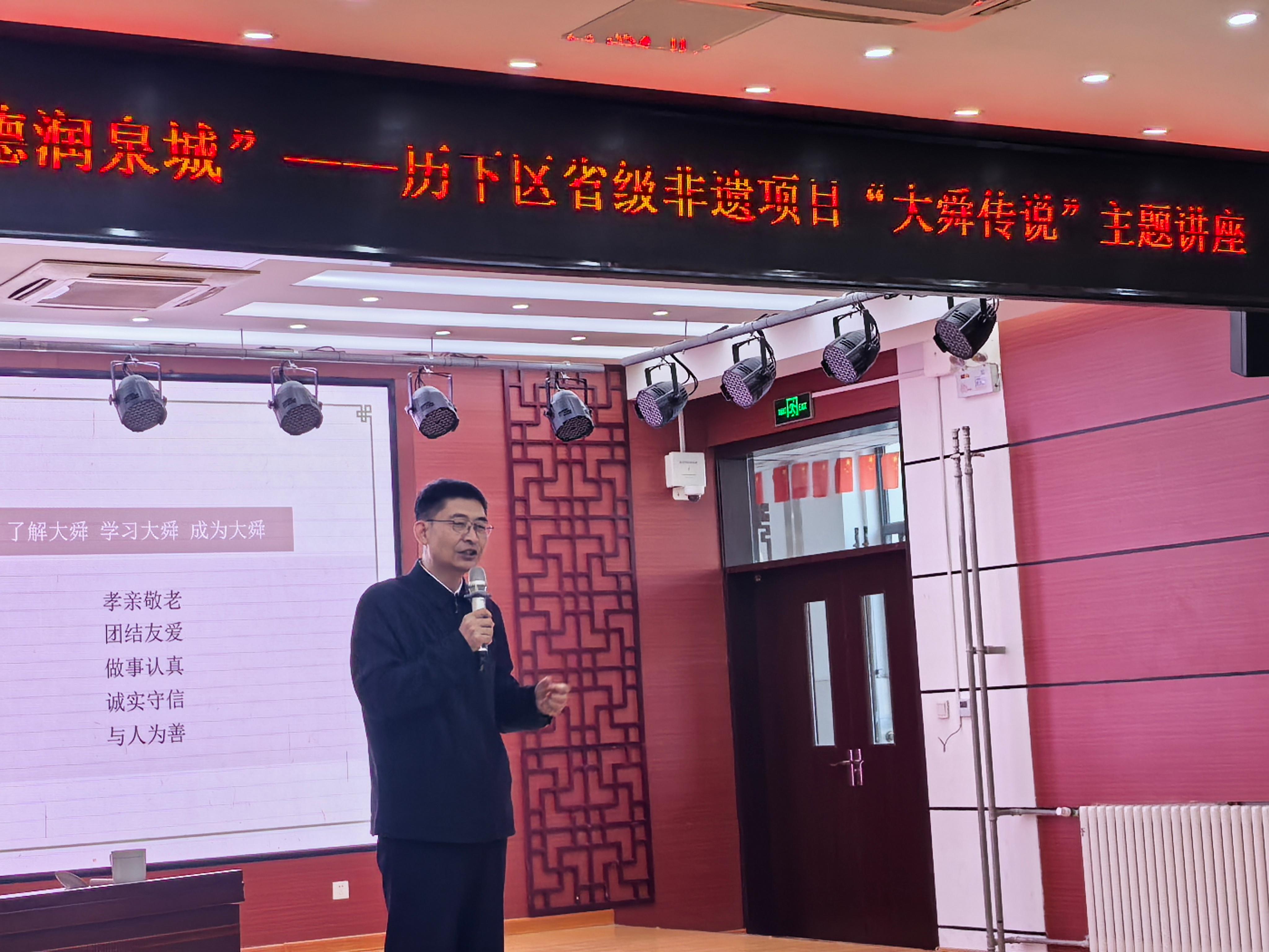 鲁网12月2日讯初冬暖阳沐校园,文脉传承润童心。近日,由历下区文化和旅游局、历下区教育和体育局主办,历下区非物质文化遗产保护中心、济南市景山小学、山东省大舜文化传播交流中心联合承办的 “舜耕历山・德润泉城”省级非遗项目 “大舜传说”主题讲座在景山小学报告厅举行。师生齐聚一堂,开启了一场跨越千年的文化探源之旅。