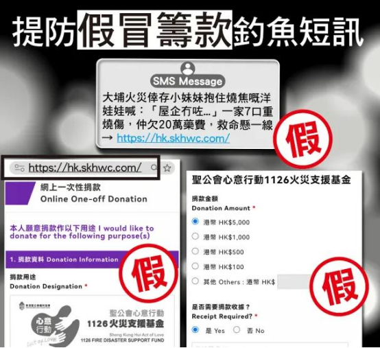 大埔宏福苑大火灾后的一些钓鱼短信图片来源:香港点新闻