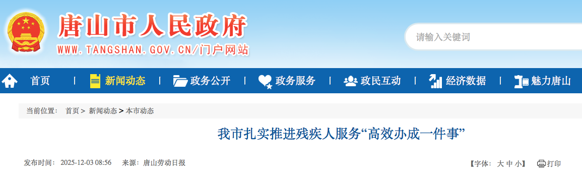 多方联动共推进。在工作推进过程中,积极与数据局、民政、人社、卫健等部门开展工作对接商洽,制定《唐山市“残疾人服务高效办成一件事”工作方案》,对各部门业务流程及办理程序进行了规范和细化。市残联全面梳理残疾人证办理、两项补贴申领、就业帮扶对接等高频事项,整合事项环节,优化政务服务流程。通过线上搭建便捷申报平台、线下设立专门服务窗口,实现“数据多跑路、群众少跑腿”。