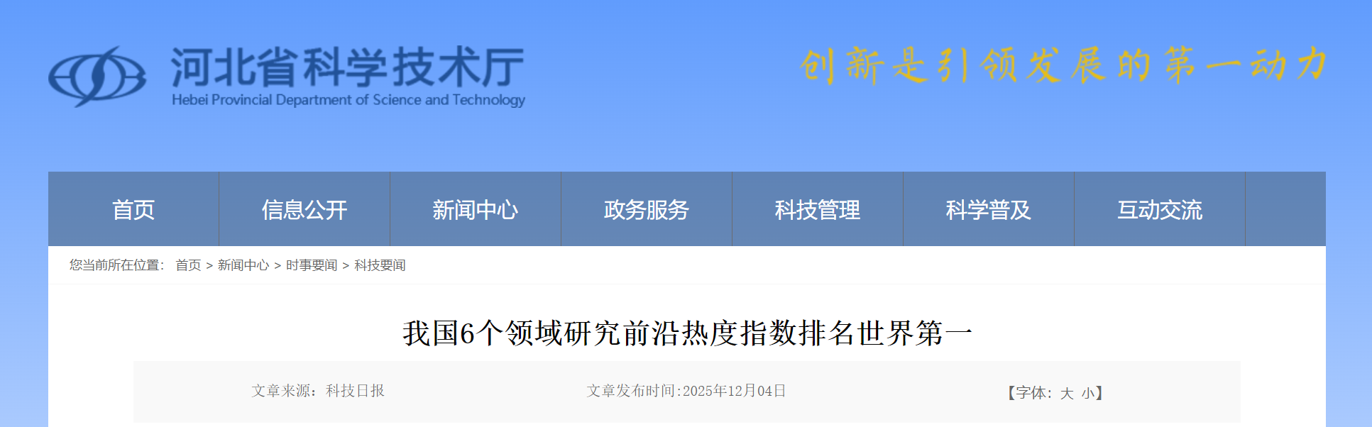 3日,中国科学院科技战略咨询研究院、中国科学院文献情报中心与科睿唯安在北京联合举办2025研究前沿发布暨研讨会。会议发布的《2025研究前沿》报告和《2025研究前沿热度指数》报告显示,我国6个领域研究前沿热度指数排名世界第一。