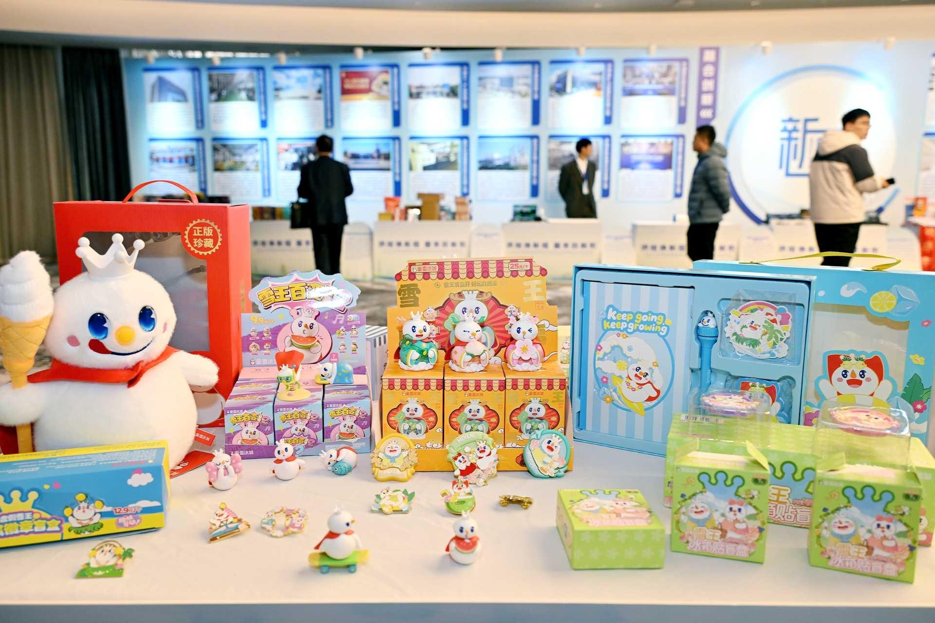 作为家喻户晓的全球性茶饮连锁品牌,蜜雪冰城的各式茶品、周边玩具琳琅满目,更实现了从源头到终端的全产业链掌控。河南博物院“豫来遇潮”“博物雅堂” 等创意产品也一一呈现,IP开发让六千年的历史“潮”起来,变得可亲、可感、可消费。