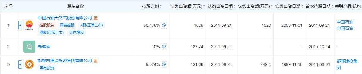值得一提的是,中国石油持有其80.48%的股份,处于绝对控股地位。