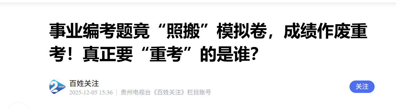 该事件发生后,当地迅速宣布原笔试成绩无效、将重新安排考试,并承诺退费,岗位不变。
