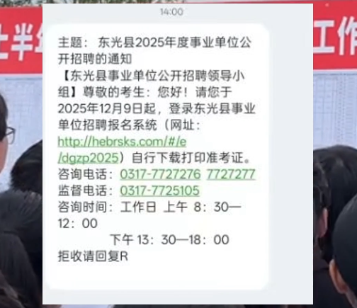 12月4日,东光县人社局回应称,因第三方考试服务机构,涉嫌严重违法违规,