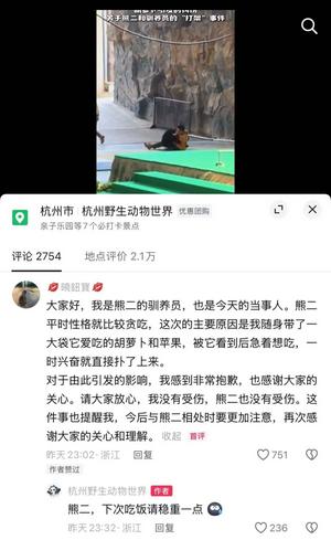 昨晚11点左右,杭州野生动物世界发布了视频说明。
