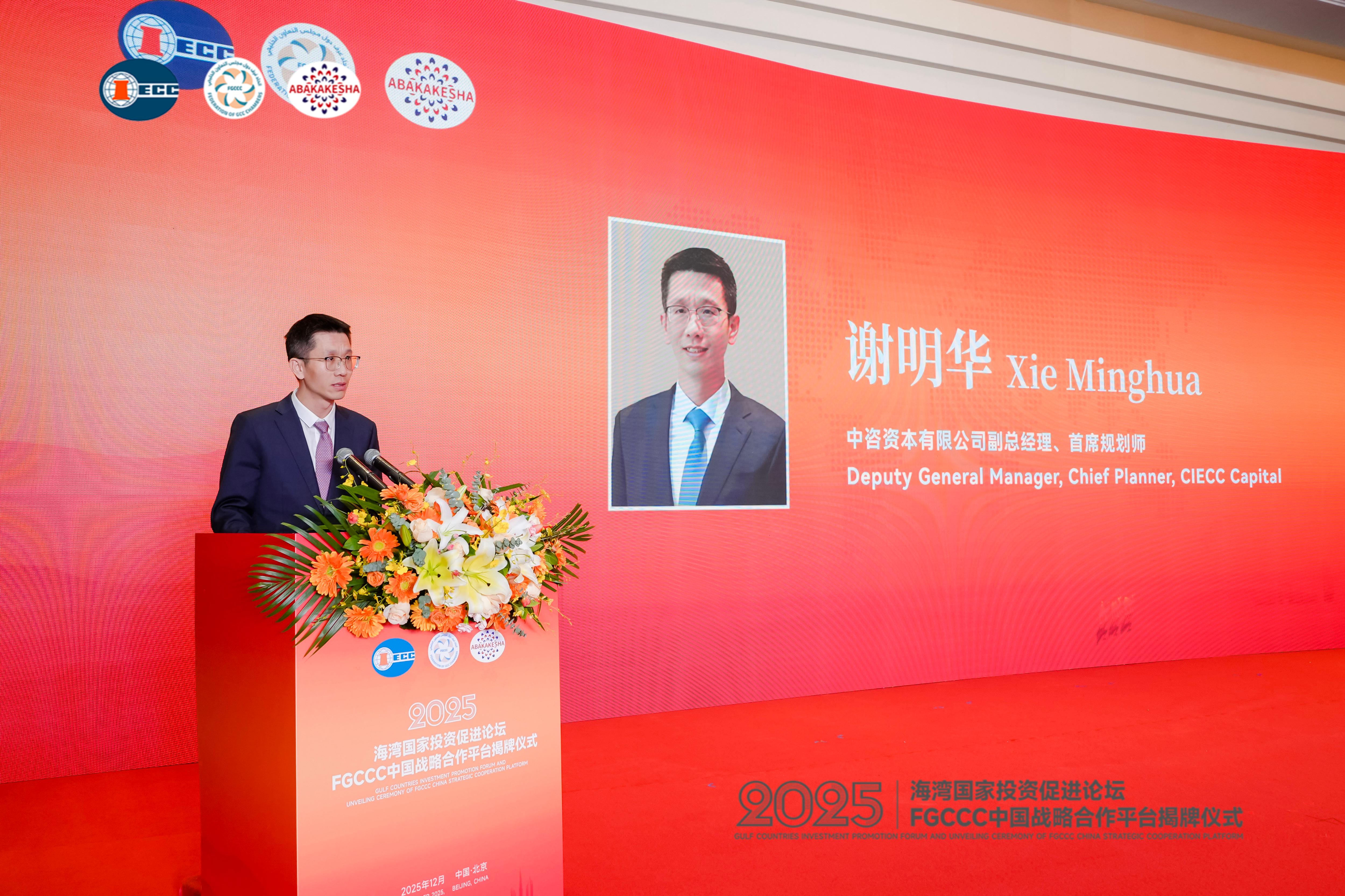 2025年12月11日,由海合会商工联合会(FGCCC)、中咨资本有限公司(CIECC)与上海阿巴卡科沙商务服务中心(ABKKS)联合主办的首届“2025海湾国家投资促进论坛暨FGCCC中国战略合作平台揭牌仪式”在北京举行。