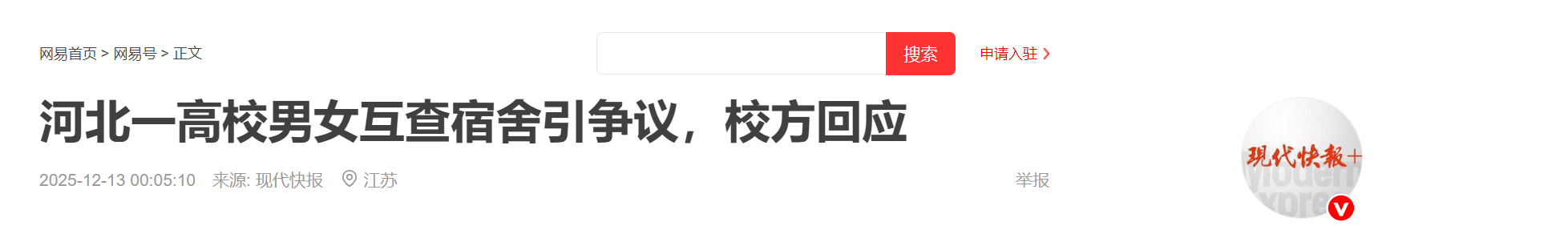 12月11日,有学生将这一情况发布在社交平台上,引发关注。有评论认为,让异性进入宿舍互相参观检查,会让学生感觉到不适,也侵犯了学生的隐私。12月12日上午,现代快报记者看到,该学院微信号已经将此文删除。