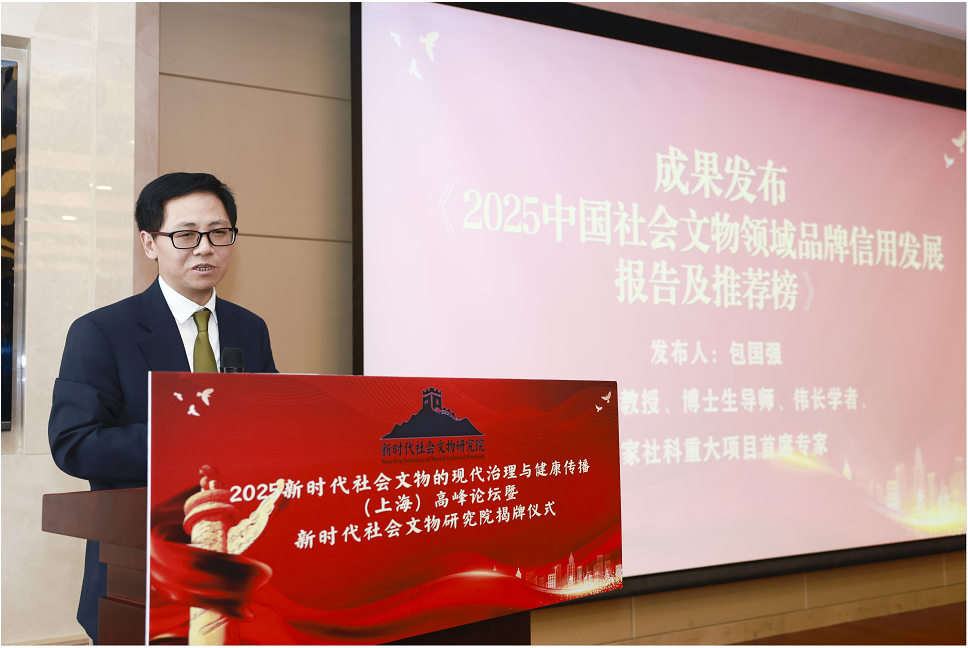 2025年12月10日,“2025新时代社会文物的现代治理与健康传播(上海)高峰论坛”在上海大学举行。本次论坛汇聚政界、文博界、企业、学界、传媒界、收藏界百余位代表,以“社会文物治理现代化与健康传播”为核心议题展开深度研讨,同期举行新时代社会文物研究院揭牌仪式,为我国社会文物保护与发展注入新动能。
