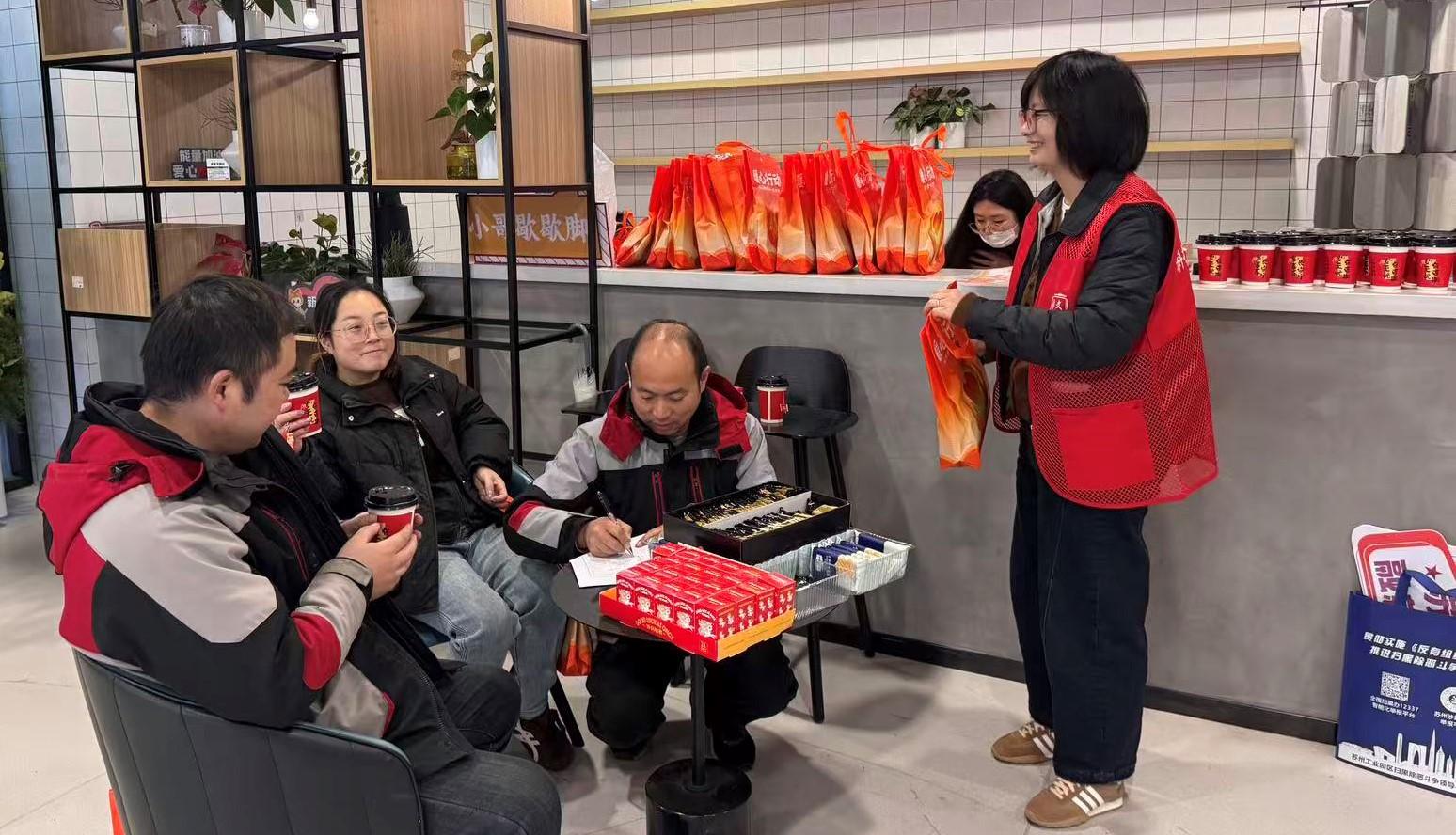江南时报讯 12月12日,冬日的寒意被阵阵暖流驱散。在苏州工业园区斜塘街道金堰社区东延四季14幢一楼的社区服务驿站,一场别开生面的“冬日骑士关怀特别活动”正在温馨举行。社区工作人员早早布置好场地,摆开桌椅茶点,驿站内处处洋溢着暖意。