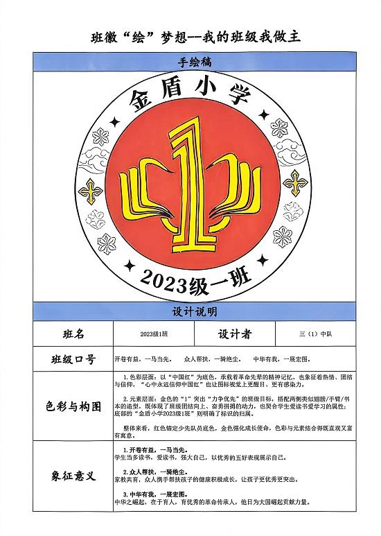 鲁网12月17日讯为切实凸显学科核心素养导向,深化跨学科教学融合实践,临沂金盾小学于近期开展了学科素养展示系列活动。学生积极参与了道德与法治与美术学科项目化学习——班徽“绘”梦想,该活动以道德认同与法治意识为核心,融合美术设计,引导学生通过班徽创作,在真实情境中践行价值认知与审美表达。